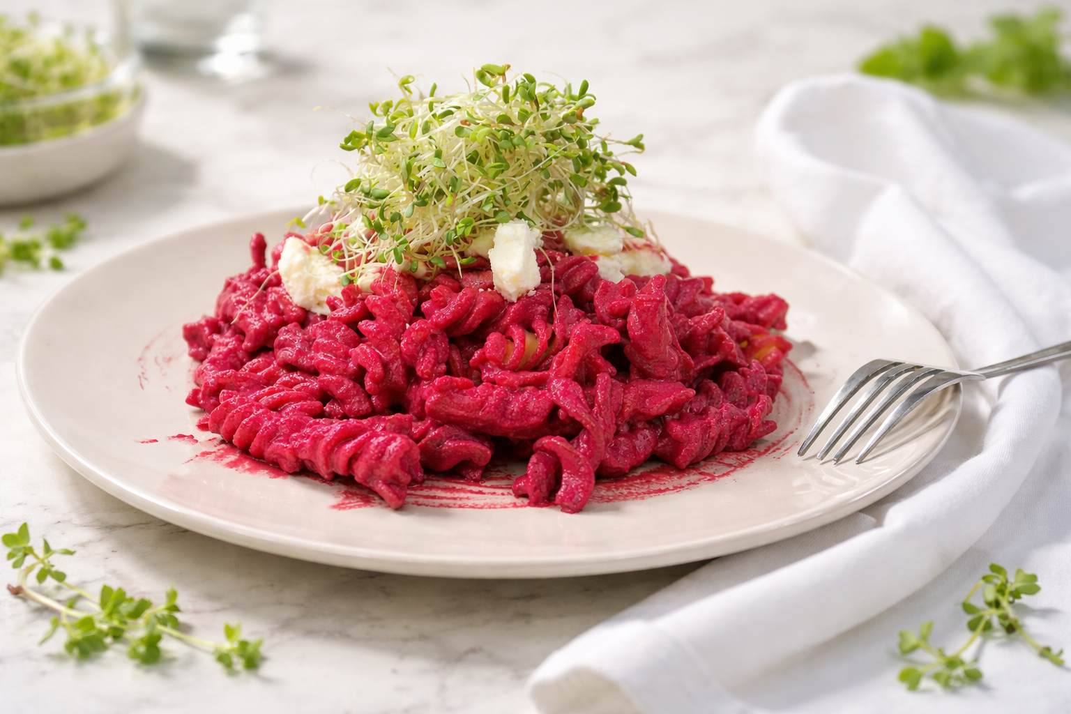 Pasta cremosa de betabel con germinado de alfalfa